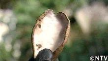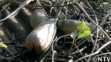 と、倉庫跡の前の茂みで見つけたのは“アケビ"の実。
