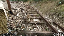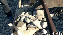 地面の砂利がえぐられ、グニャリと傾いた線路。