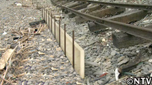 保線マン・渋沢さん「砂利が流れ出さないように横に板を設置する」