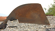 そこで、達也が持ってきたのが、どデカいノコギリ“前挽大鋸(まえひきおが)"。 |