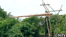 赤松の一本モノ、約200kgを地上5mの櫓の上へ。