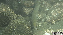 ウナギは、岩場を離れ、海藻や岩場の密集したエリアに。
