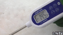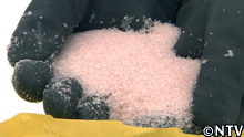 硫安は通常、農業用肥料として使われているが、 スキー場のコース固めにも使われる。 その訳は、雪の温度は、およそ-2.5℃前後だったが、 硫安を撒くと、ぐんぐん温度は下がり-14.5℃に。 より冷やす事ができるため、より固く、より強い雪玉となる。 |