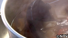 殻をむいて、火で炙り、それを茹でて出汁をとる。 |
