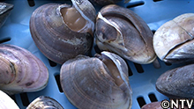 殻が割れて捨てられるハマグリがあると聞き、市場へ。