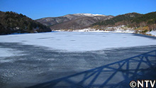 冬の間、湖の綺麗な水が全長1kmに渡って凍りつき、