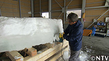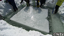 一方、湖から引き上げた天然氷を市内の加工場に運び、