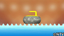 城島がストーンを投げてみるが、距離が伸びない。 |