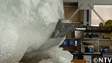 重さ2.5トンの氷の塊をクレーンで引き上げていく。