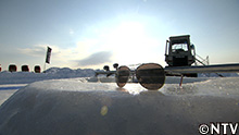 いよいよ巨大な氷のコースに巨大な氷の塊を運び入れる!