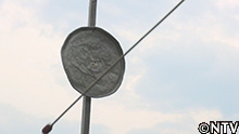 馬の代わりは手漕ぎトロッコ、的は直径30cmの鍋のフタ。
