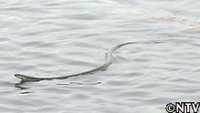 沖から島へ、上陸を試みようと迫る黒く、細い影…。