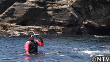 そこで、地元ダイバーと漁師さんの力を借りて、船を使って測量を続ける。