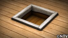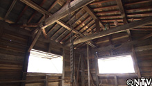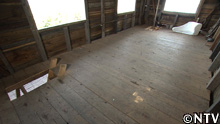 舟屋の床は、滑り棒に階段用と、すでに穴だらけ。