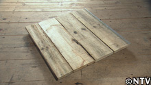 囲炉裏の底板も、細長い古材の板を雇い実継ぎで正方形に。