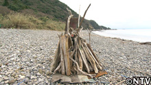 そこで、よく燃えそうな流木をいくつか浜で収集。 |