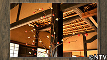 繭の豊作を願い、形を似せた紅白の団子を枝に刺して飾ったもの。