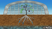 命の危険を感じた巾着なすは、必死に根を張る。
