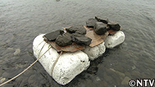 そこで、思い付いたのがイカダでの運搬。 |