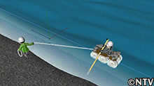 こうして、DASH島に、「船橋」開通。 |
