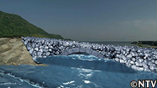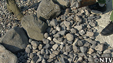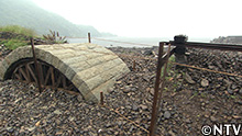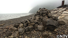 せっかく積んだ石はすべて海の底へ…。