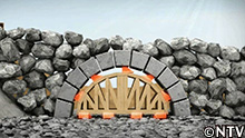 すると、ゆっくり、徐々に引き出されてくる支保工。 |