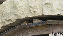 石の重さを支えた60本の柱を抜き、