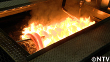 その工程は、まず材料となる鉄の棒を800度に加熱し柔らかくする。 |