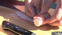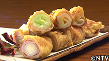 大絶賛の後は、城島が揚げた“豚肉巻きネギ天"。