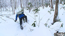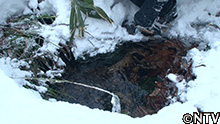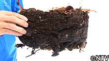 試しに、雪の下を掘ってみると、出てきたのは腐葉土。 |
