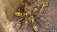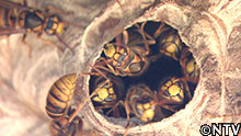 冬でも巣を壊せば、中に残っていたハチに刺される事故も。