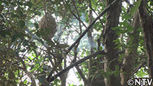 スズメバチの巣に直接、煙を当てて燻す。