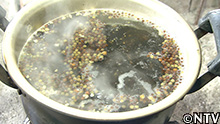 少し待ったら、砕いたハマエンドウを煮込んでいく。