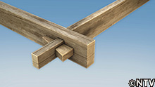 梁は載せるだけでも十分だが、棟梁・達也は、安定させる工夫を施す。
