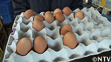 選別作業中だった、養鶏を営んでいる松山さんに捨てるような卵はあるのか?