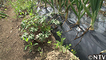 子出藤さんの畑では、生い茂る雑草を収穫までに3~4回ほど手作業で取るが、