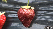 お客さんが獲り損なったイチゴは、熟しすぎて色が濃くなる。