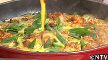 さらに、熱したフライパンに水と、めんつゆを入れ、