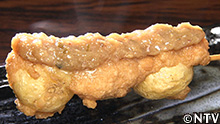 ジャガイモの天ぷらに、甘めの味噌ダレを、