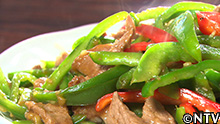 沖縄の黒豚アグー豚とピーマンを一緒に炒めた「ピーマンチャンプルー」、