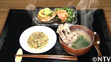 さんが焼きのチャーハンと、つみれ汁を添えれば、