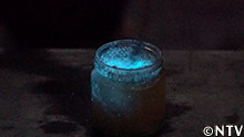 明るい時に見れば、海の上を漂うオレンジ色の物体。青く輝く条件は、