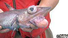 エサとなる魚やエビを獣のように首を振りながら食べる深海の凶暴な肉食魚。 |