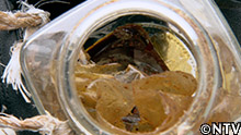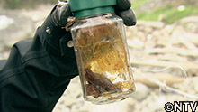 と、見つけたのは、琥珀色の固形物が入った漂着物の瓶。