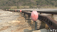 2年前の台風では、線路の下の砂利が根こそぎ、波にさらわれた。