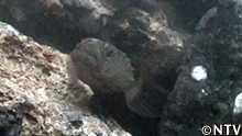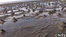 隠れていた小さな生き物は、流れに押しだされ海中へ。