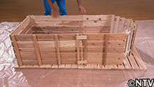 すのこを貼り合わせて、バスタブほどの型枠を作り、