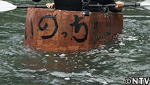 和紙の舟で川を下り、水に強い土佐和紙をPR!まずは、