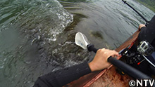 そこで、舟に乗り込んだのは、スタッフ最軽量のAD足立。