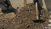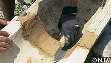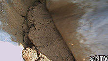 三和土が道具にまとわりつき、混ぜるのに苦労していた。 |